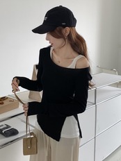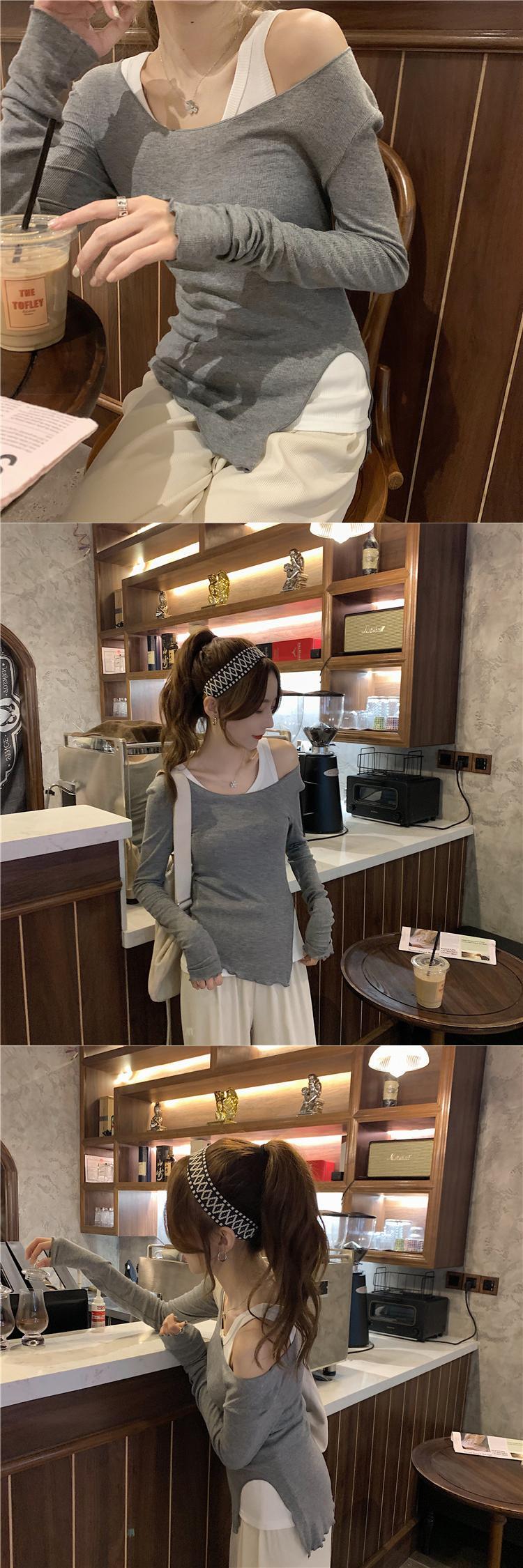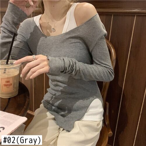 オフショルダー不規則 Tシャツ原宿 Ropa グラフィック Tシャツ偽 2 クロップトップスフェアリーコアグランジ Tシャツ かわいい