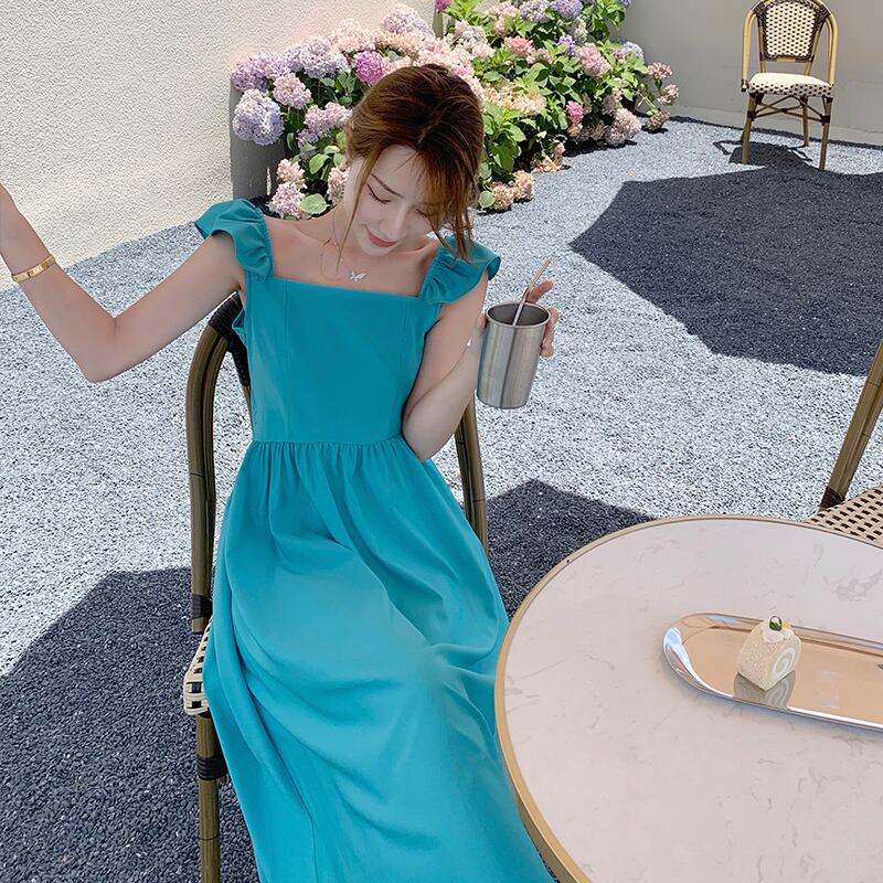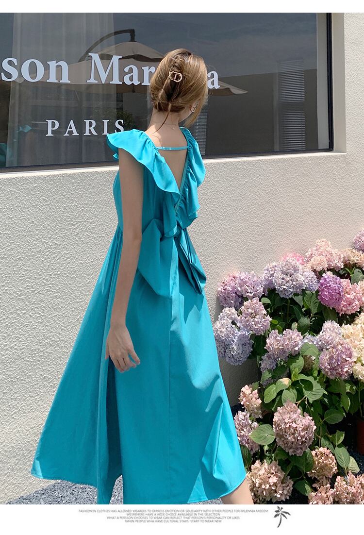 Vestidos es サマードレスバケーションビーチフレンチフェアリーブルーバックレスリボンドレスセクシールーズフリルパーティー 夏物