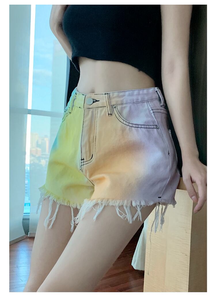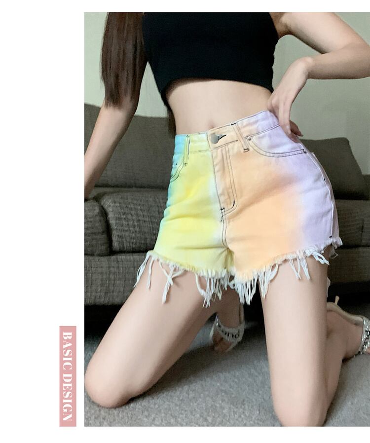 カーゴショーツセクシーカラフルグラデーションウエストフレアデニムショーツ Tels Y2k Pantalones Cortos デ Y2k ジーンズショーツ ブルマー