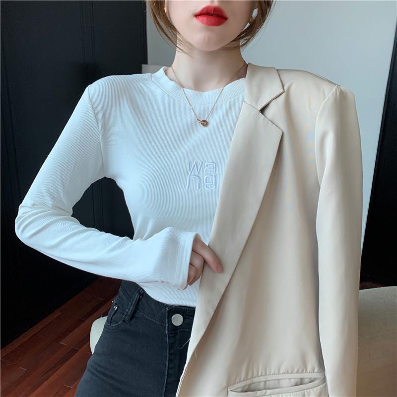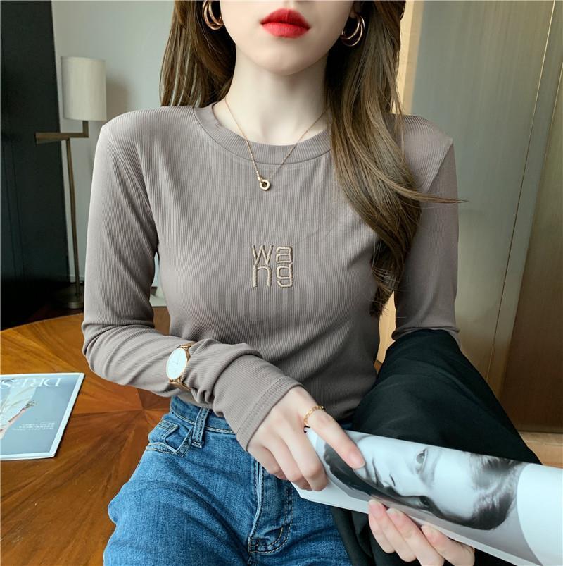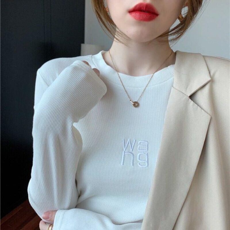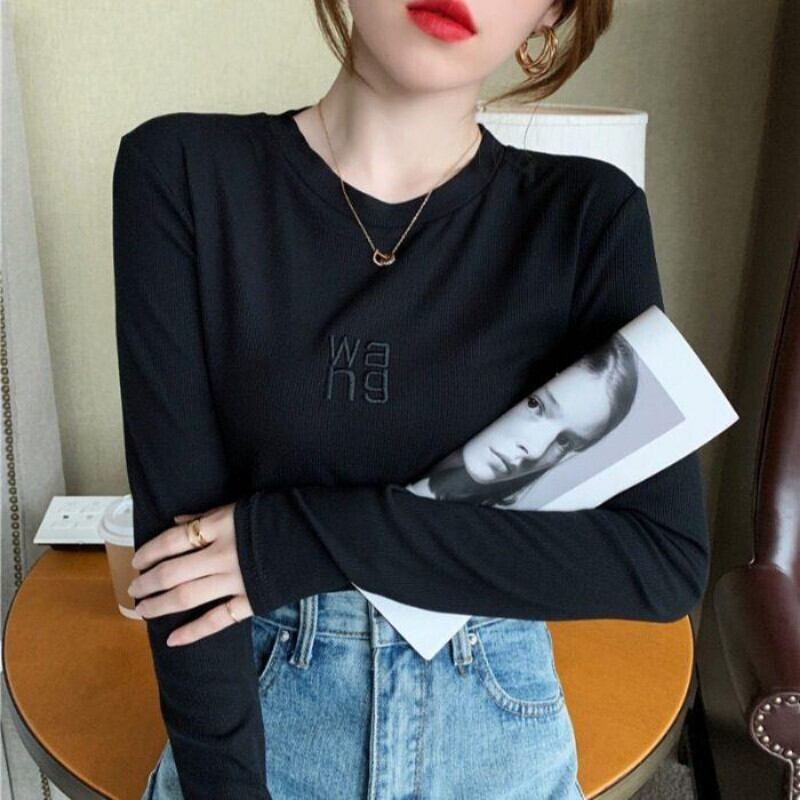 グラフィック Tシャツ長袖 Y2K 美的トップス刺繍プルオーバー Tシャツ底入れ Tシャツ ロング