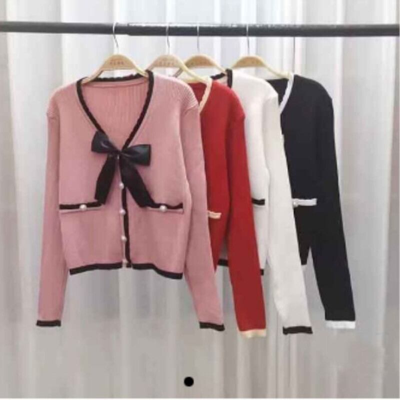 V ネック セーター 長袖 トップ ニット カーディガン リボン ピンク カーディガン クロップ Y2k スイート シック ボタン セーター ロング 大人ガーリー スウィート キュート カジュアル Vネック