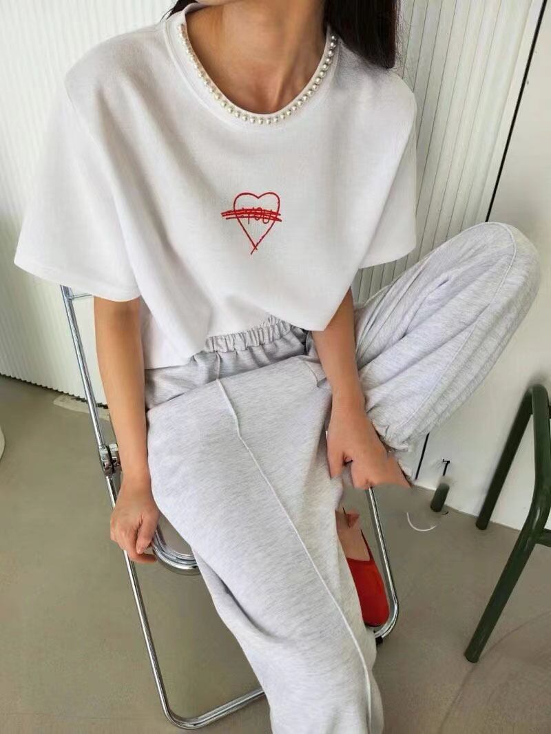 半袖グラフィック T シャツ Fairycore 美学グランジ印刷ビーズ刺繍 Y2k トップレターシャツ ショート ハーフスリーブ Tシャツ
