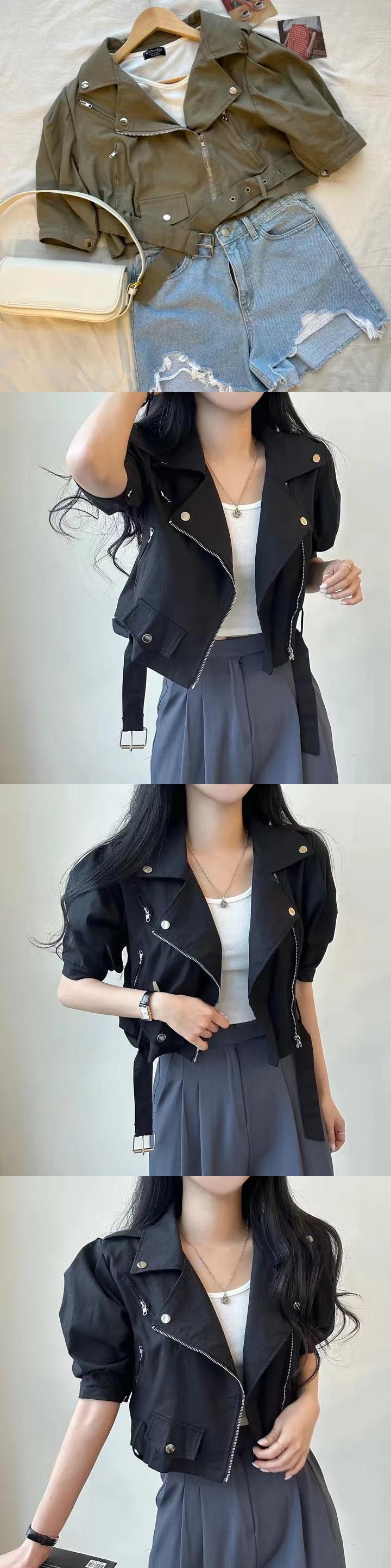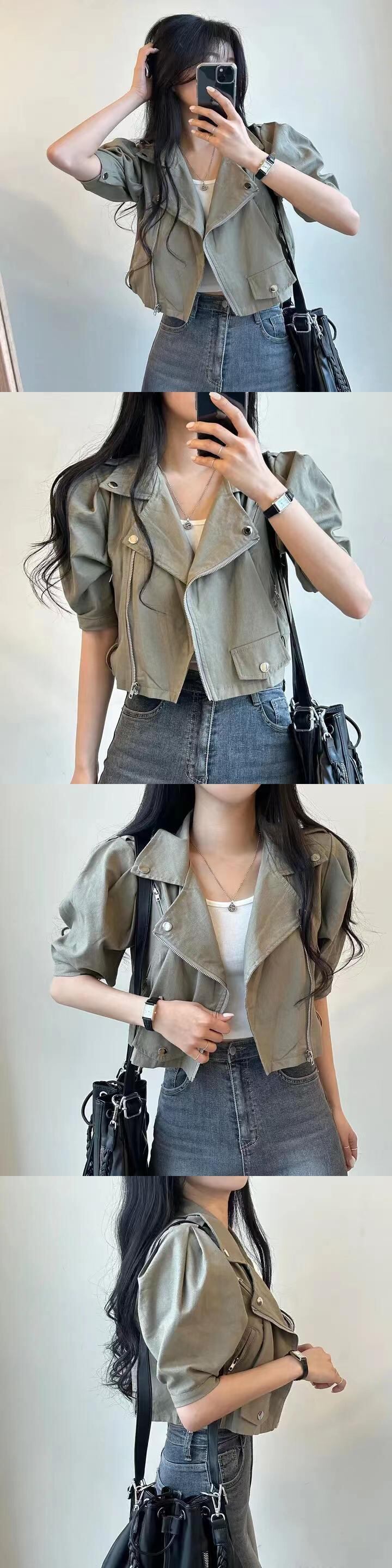 原宿白半袖ジャケットチャケータ Y2k ボンバージャケットセンスコートジッパートップスグランジ ショート ホワイト ハーフスリーブ かわいい