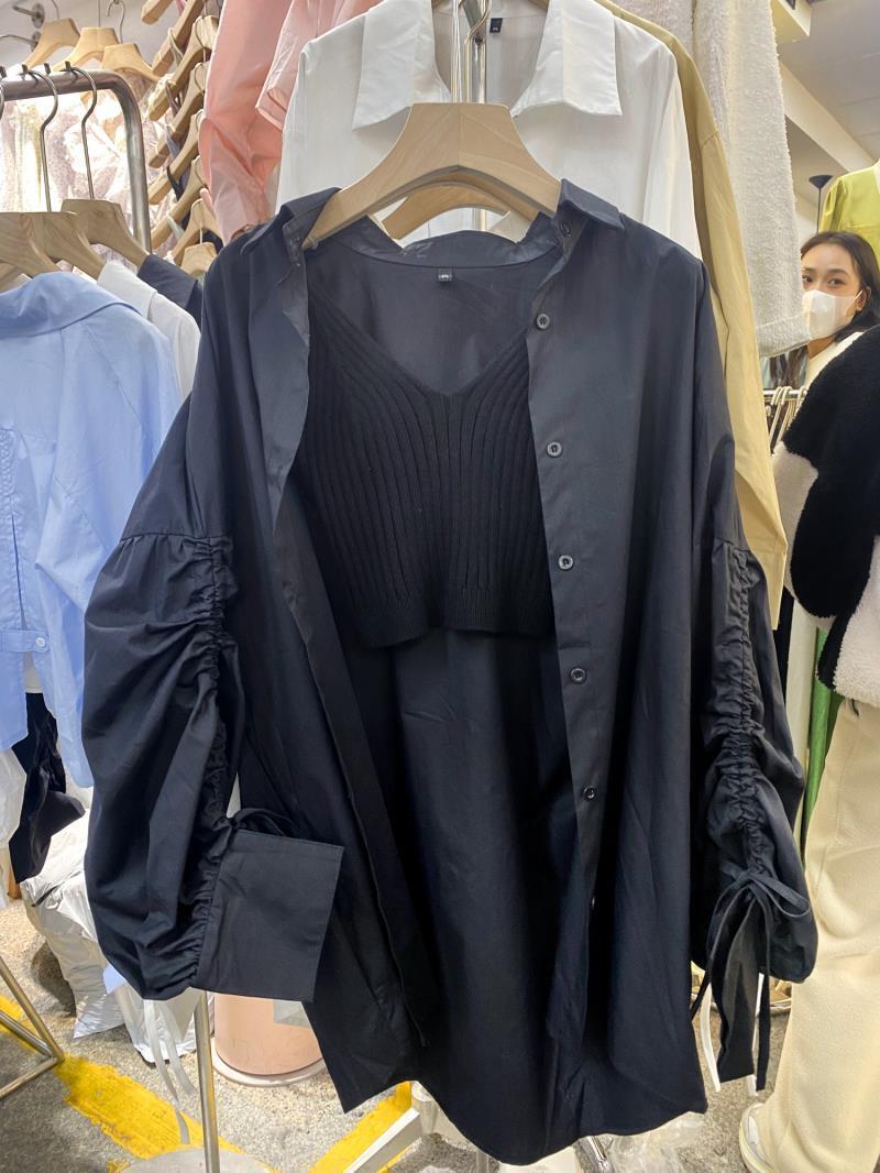 キャミソールタンクトップニットベスト2点セットルーズ巾着シャツY2k美学グランジブラウス服