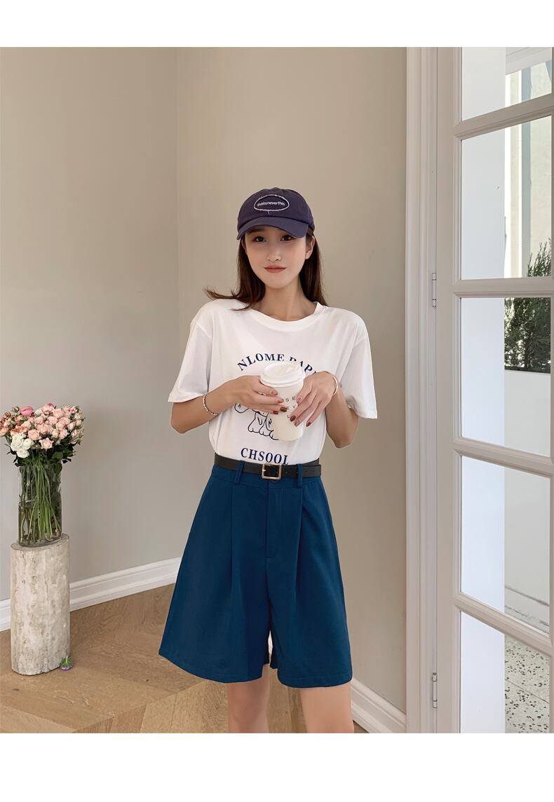 ウエスト ワイドレッグ スーツ ショート パンツ カーゴ ブラック ショーツ Feminino Pantalones Cortos De Versatile Sense ブルマー ワイドパンツ