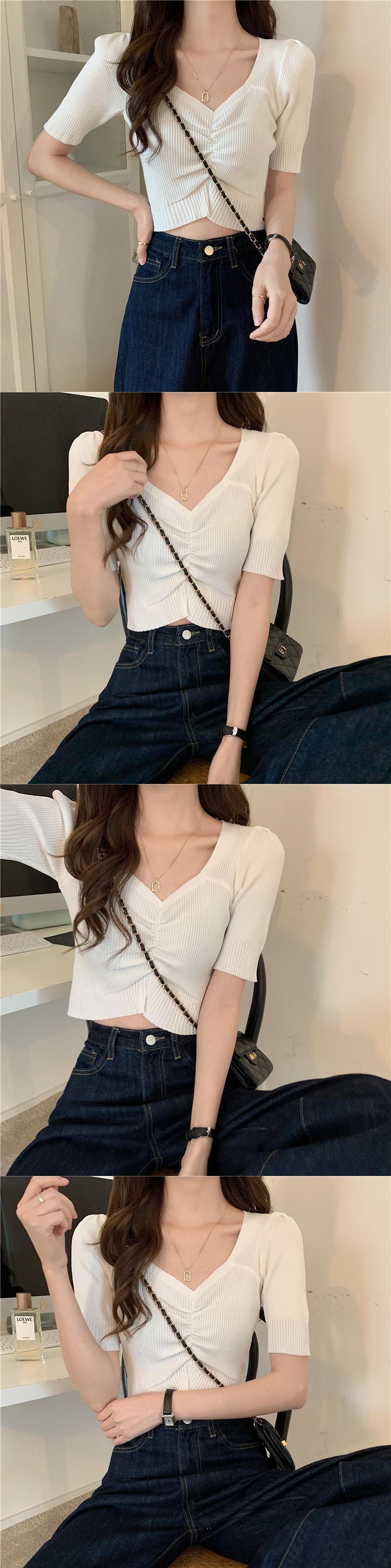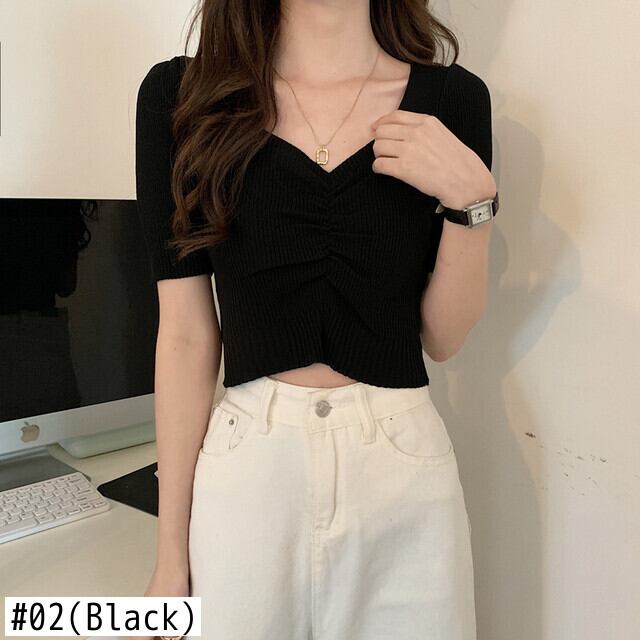 V ネッククロップトップアイスニットシャツグラフィック Tシャツ配送ニット Tシャツ シルク