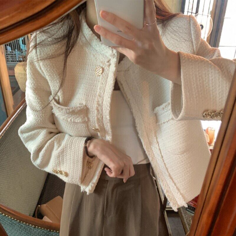 冬ジャケットチェック柄カーディガンラウンドネックメタルボタンルーズ長袖ツイードコート黒テーラードコート ロング レッド ブラック ウィンター 冬物 Oネック