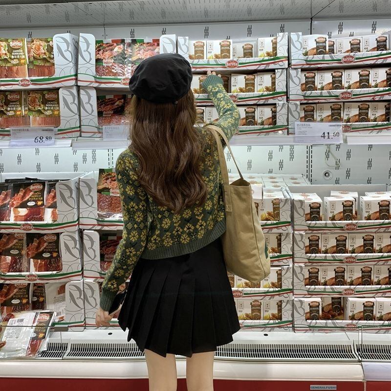スクエアカラーニッチクロップセータージャケットコントラストフローラルニットカーディガンY2kプルセータースリムトップス 花柄 スクウェア