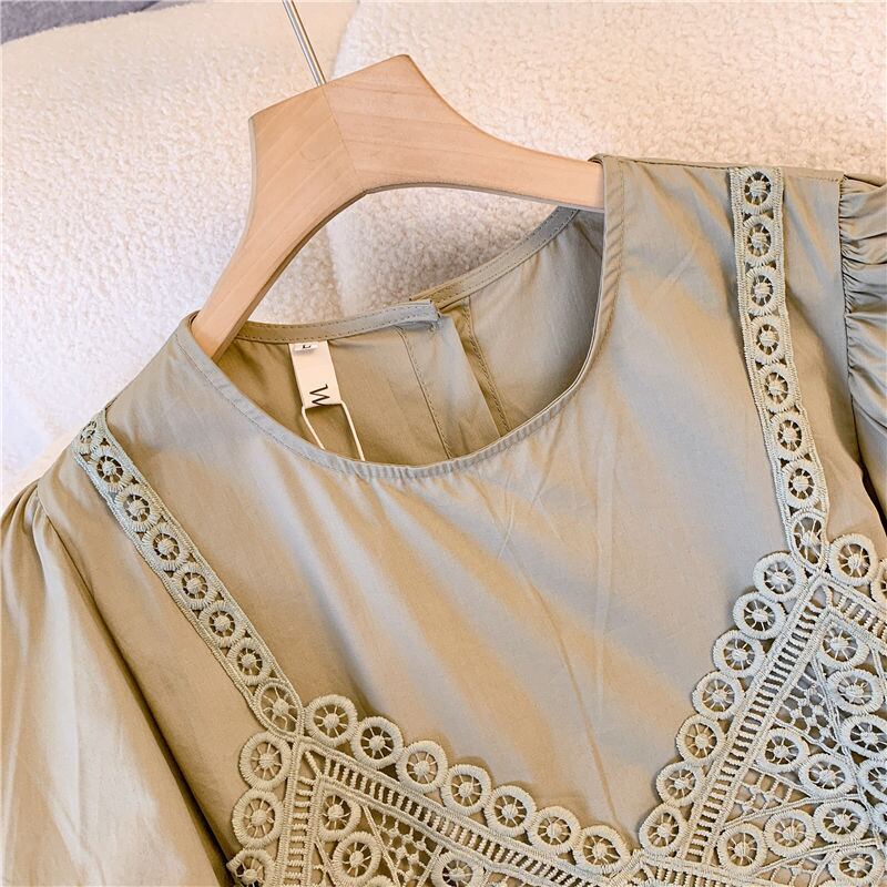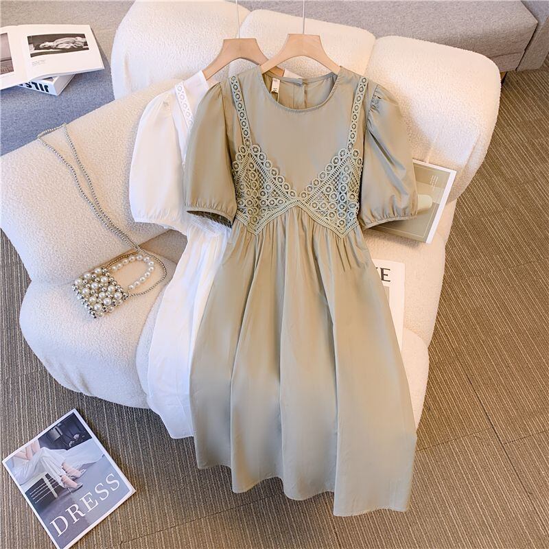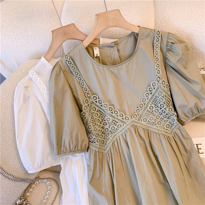 プレッピースタイル Vestido 半袖ルーズレースフェイクツーピースホワイトドールドレスサマーローブ Y2k ショート ハーフスリーブ 夏物