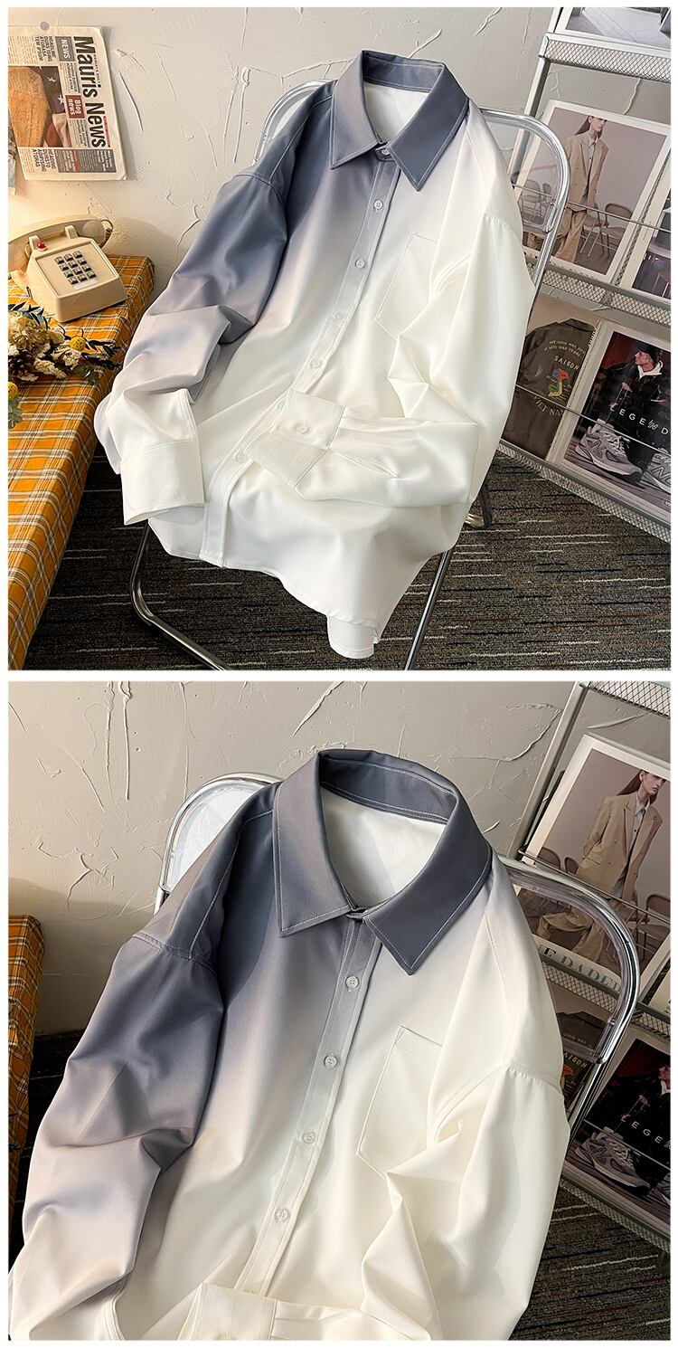 ese ストリートカップルグラデーションタイダイシャツルーズシャツトップスセンスブラウス