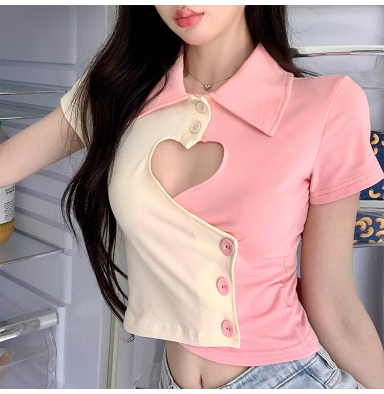 セクシー甘い Y2k Ropa グランジ Tシャツグラフィック Tシャツ美的愛中空クロップトップス服ピンク不規則 Tシャツ 大人ガーリー スウィート キュート カジュアル