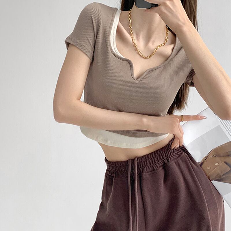 セクシー偽 2 美的服 Y2k トップ作物 Ropa グランジコントラストストリート Tシャツニットシャツグラフィック Tシャツ
