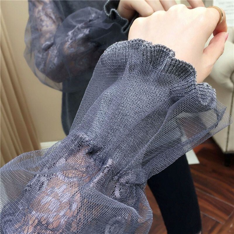 生き抜くレースメッシュ Y2k 中空アウトセータープルセータープルオーバーフレアスリーブ黒ニットセータートップス ブラック