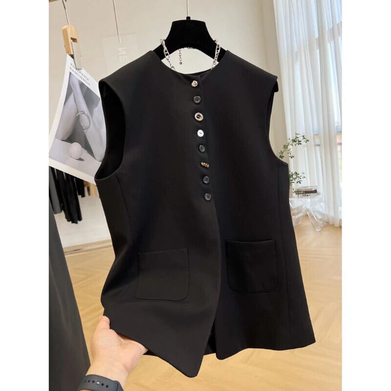 黒ベスト春ノースリーブ生き抜くオフィスレディレジャー M-3XL ゆったりとした気質シックオールマッチブレザー ブラック スプリング 春物 会社 学校 通勤や通学にも