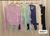 クロップド ブルー 3D バタフライ カーディガン セーター セーター 日焼け止め シャツ コート ジャケット プル ストラップレス トップ スリム