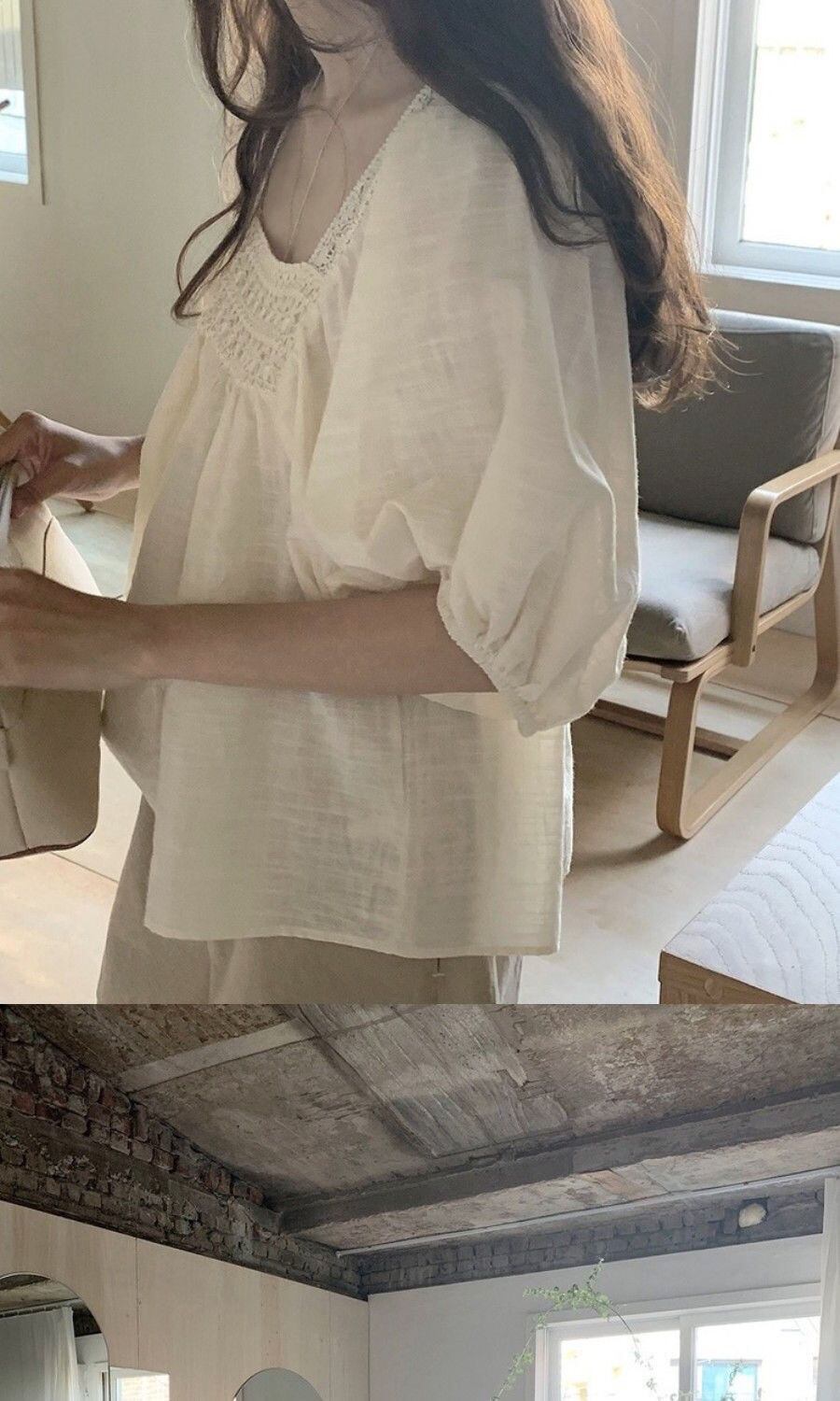 スクエアかぎ針編み中空トップスルーズパフブラウス半袖ドールシャツシャツ刺繍花 ショート レッド ハーフスリーブ フラワーデザイン スクウェア