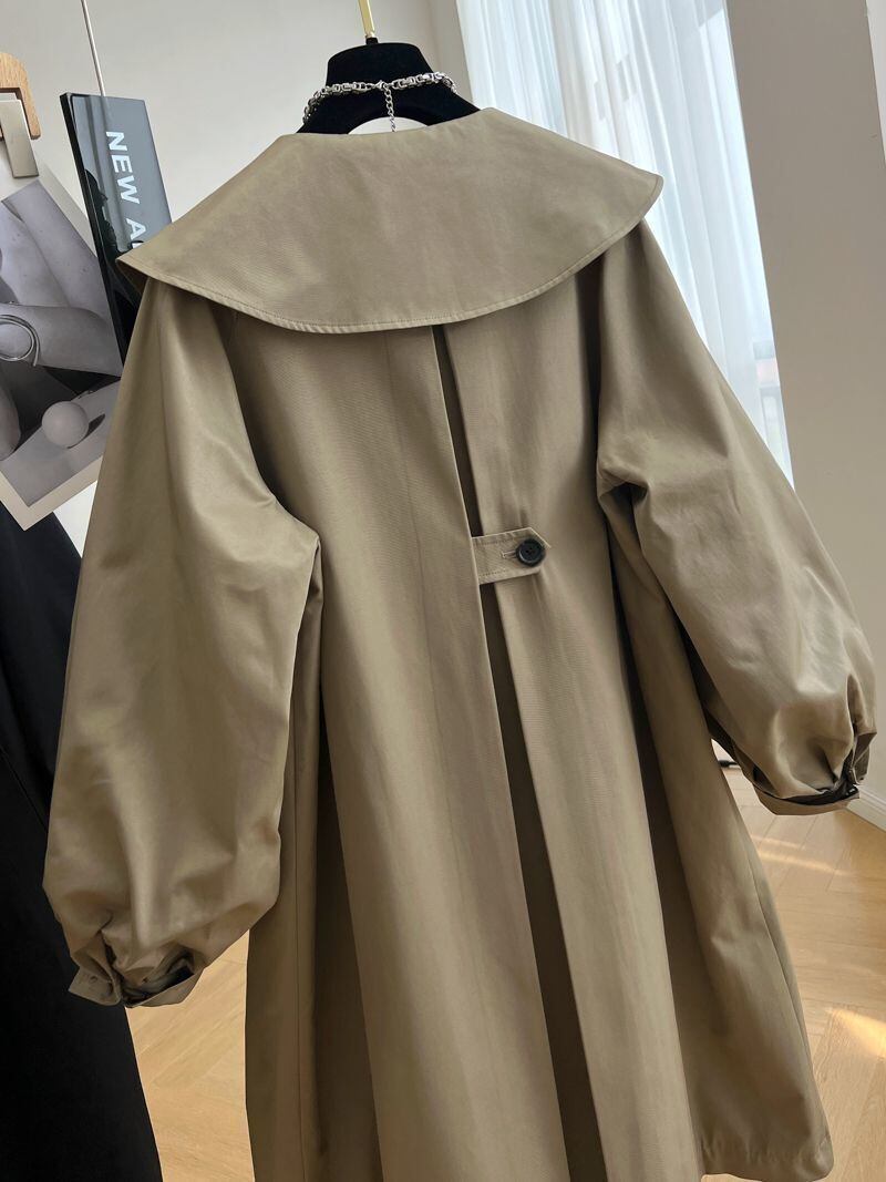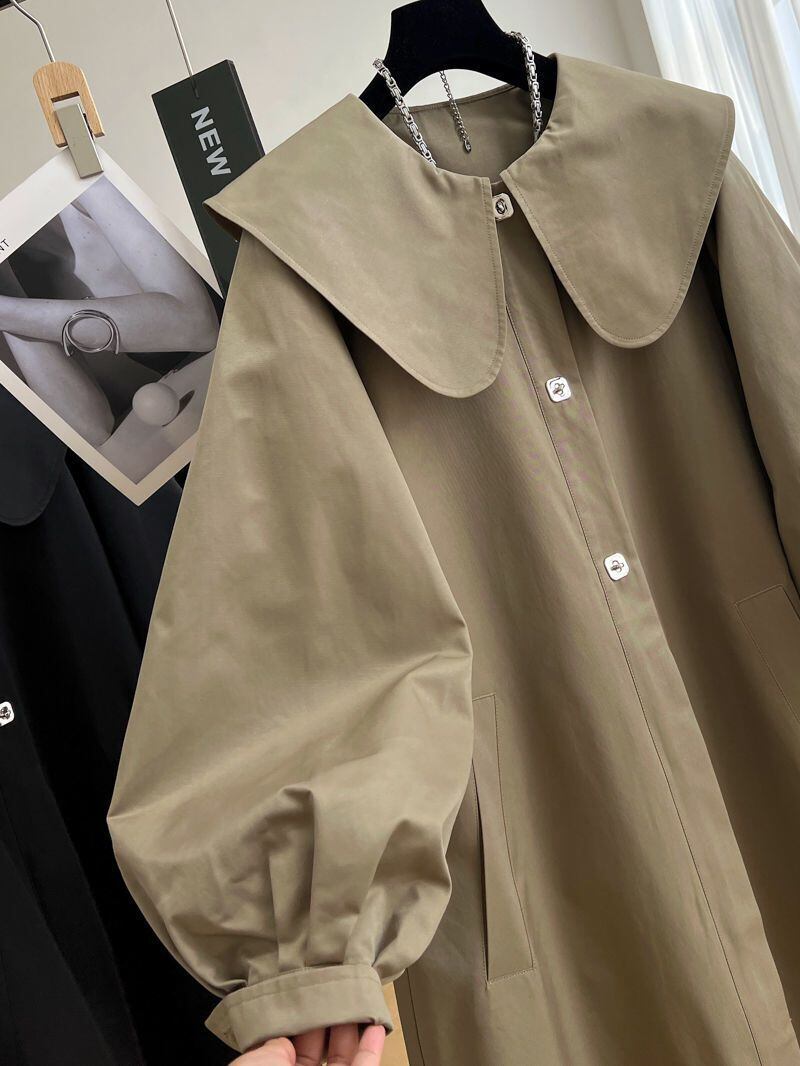 ピーターパン襟トレンチコートカーキ冬服ロングブラックジャケットストリート Jaqueta ウィンター 冬物