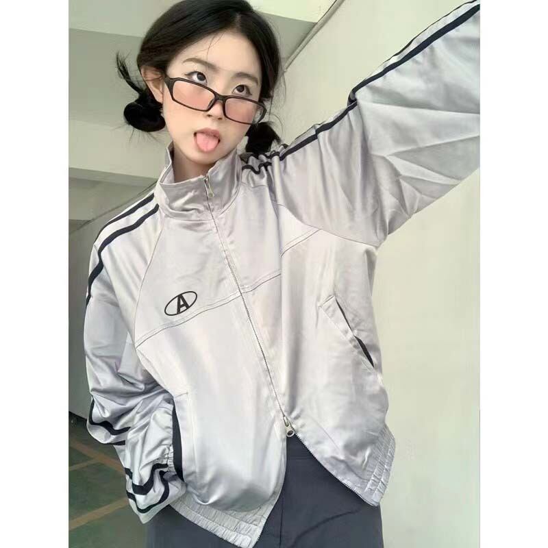 ストリート Y2K ジャケット美的 Teachwear ジッパーオーバーサイザーコート原宿ジップアップトップス服 かわいい