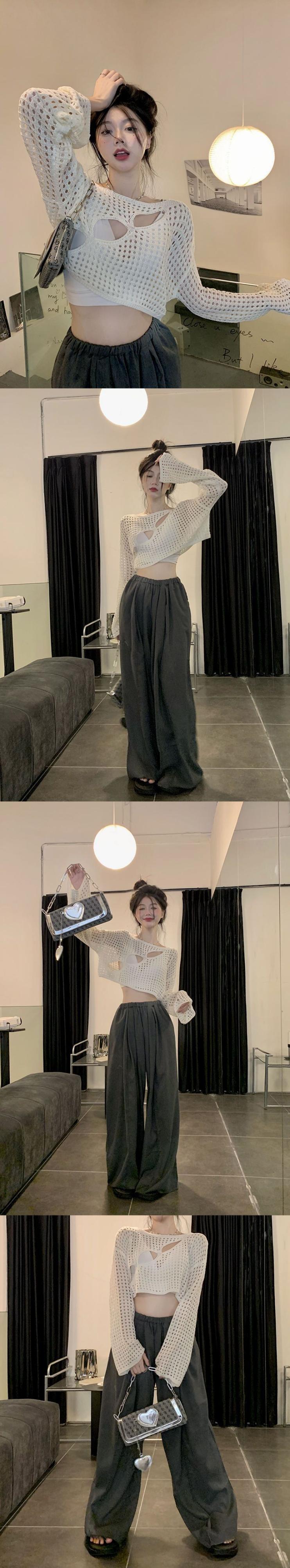 中空アウト日焼け止めシャツセータールース Y2k クロップトップニットシャツセクシーブラックホールセータージャンパープル