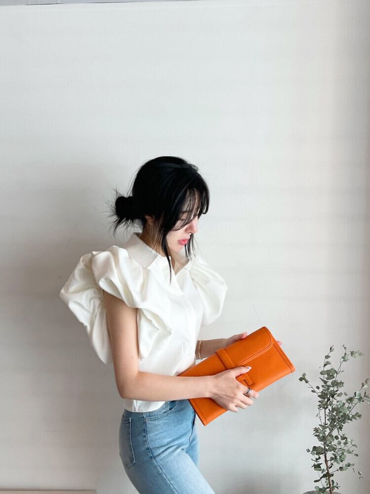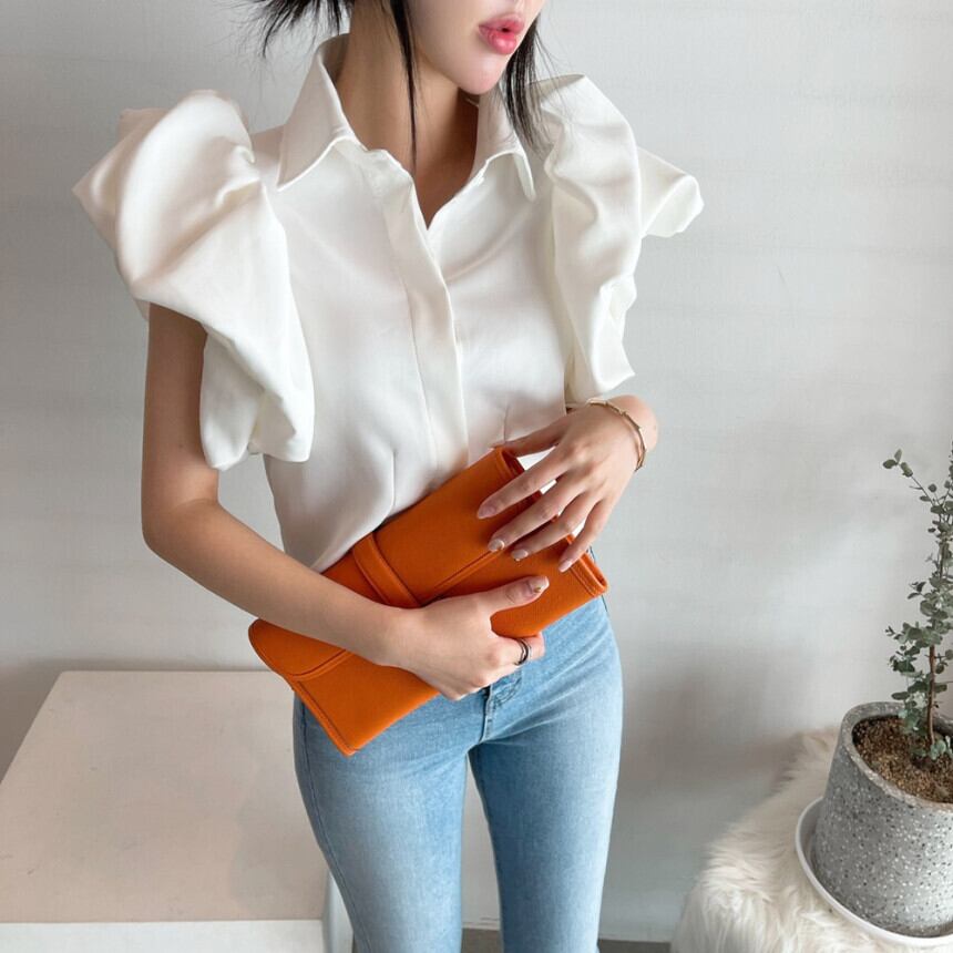 ニッチパレススタイル半袖ラペル白シャツクロップトップランタンドールシャツ ショート ホワイト レース ハーフスリーブ
