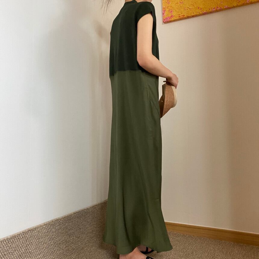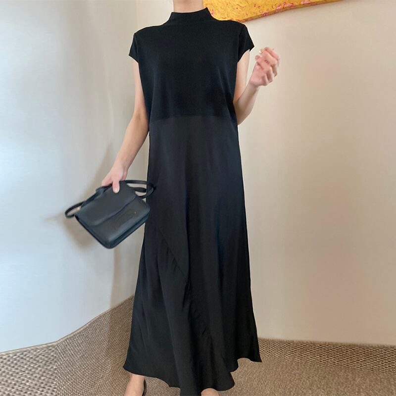 ハーフカラーパッチワークフェイクツー半袖ニット Vestidos デブラックドレス A ラインローブ ショート ハーフスリーブ Aライン