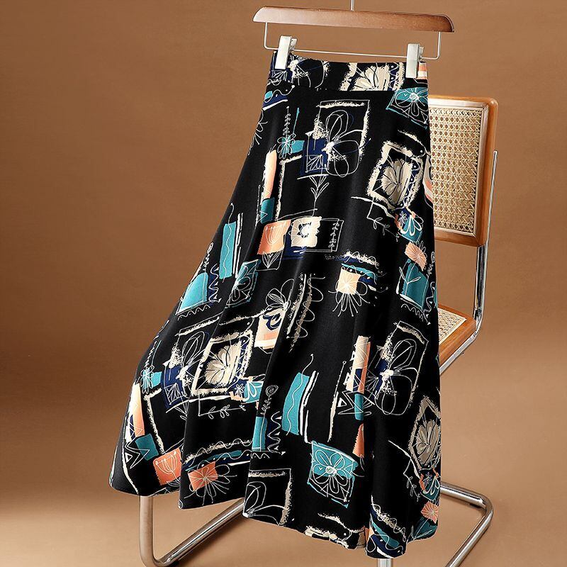 弾性ウエストシフォンプリント花柄スカート Faldas Largas スリムスカート エラスティック 伸縮