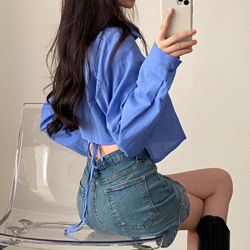 ホワイトシフォンシャツショートカーディガン日焼け止めシャツルーズバック包帯ブラウスレースクロップトップシャツ