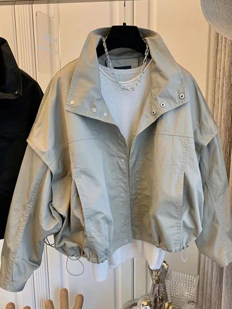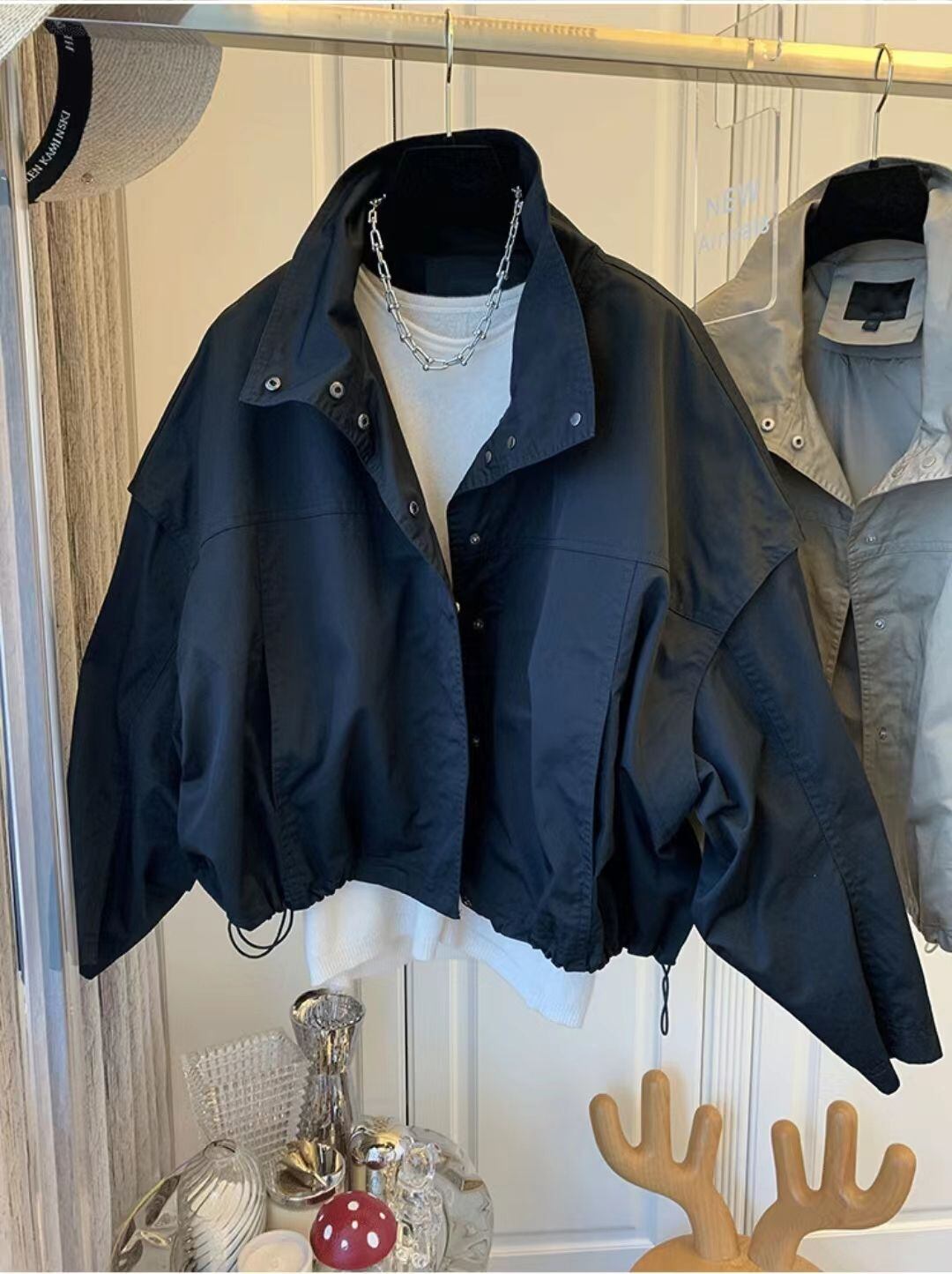 巾着トレンチコート冬服ルーズショート黒バットスリーブジャケットストリート Jaqueta ブラック ウィンター 冬物