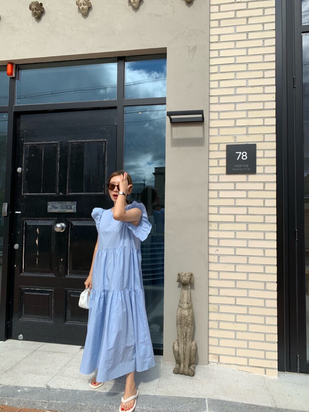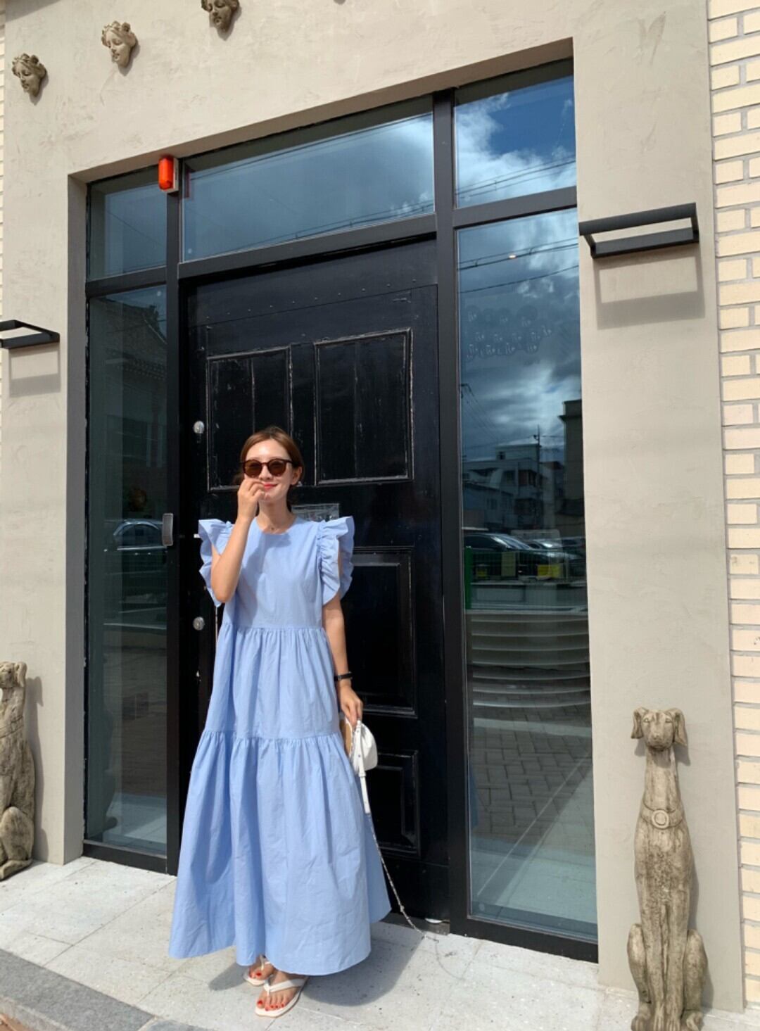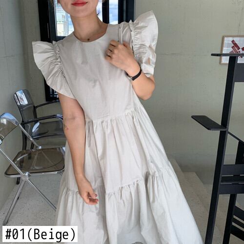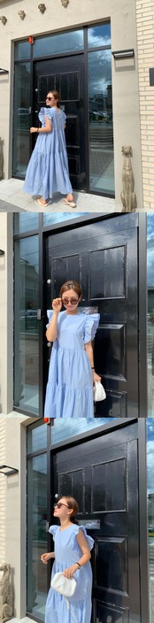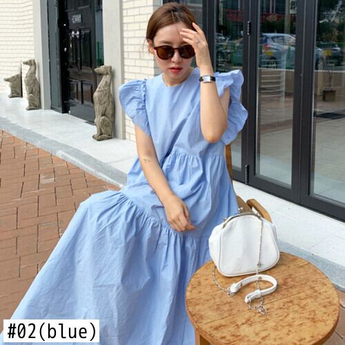 袖付きラグラン夏 Vestidos O ネック真菌スプライシングプリーツルーズヘムフライスリーブドレスブルーホワイトスイングローブ人形 サマー 夏物 Oネック