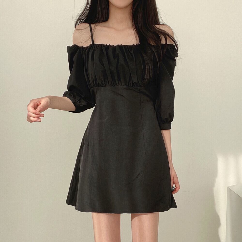 オフショルダーミニセクシースラッシュネックストラップレスドレス Vestidos De es パーティースリムブラックキャミソールドレス