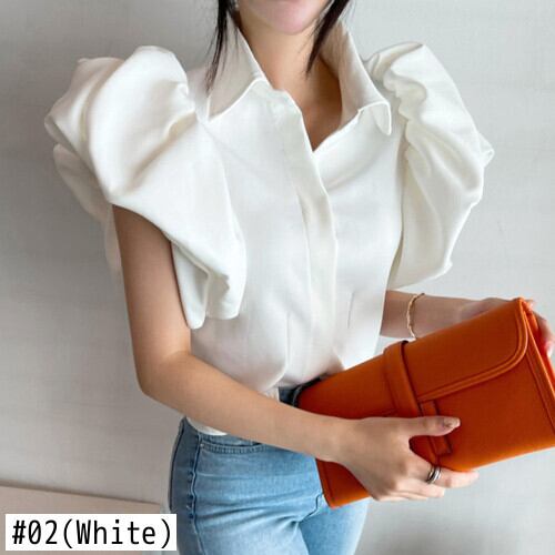 袖ショートシングルブレストシャツニッチスタイルラペルブラウスランタン白シャツ夏 ホワイト サマー 夏物