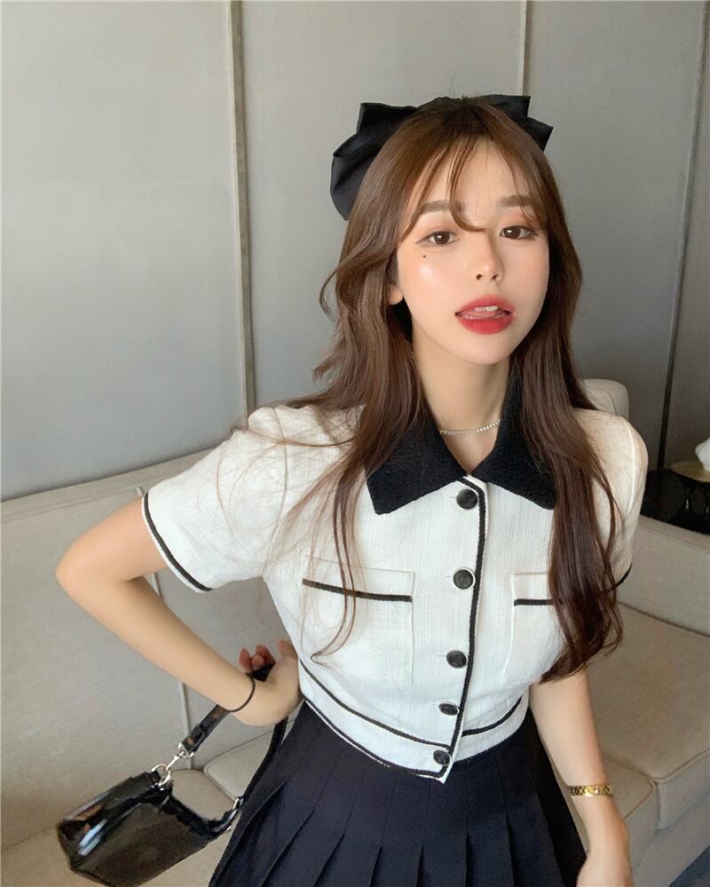 半袖ツイードコートスリムカーディガンニッチブラック不規則ジャケットサマークロップトップシャツ ショート ハーフスリーブ 夏物