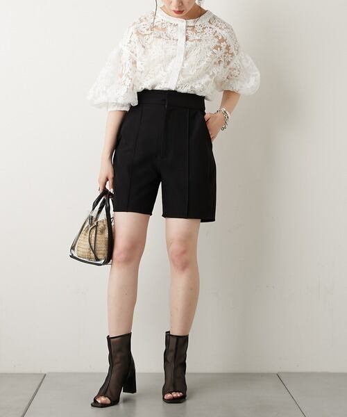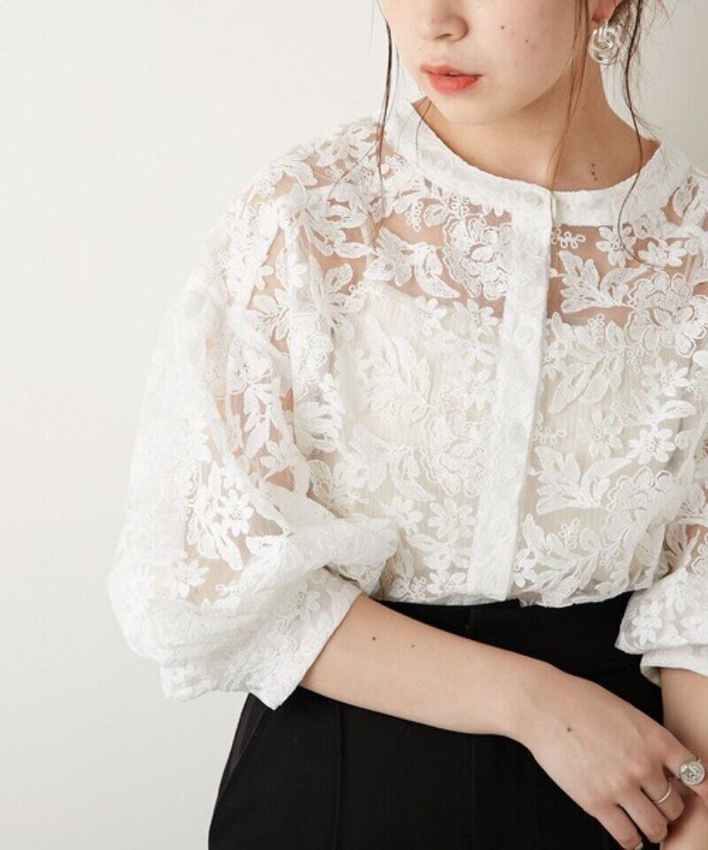 レース春夏ブラウストップス中空アウトスタイルランタンスリーブショートシャツカーディガン花 スプリング 春物 サマー 夏物 フラワーデザイン