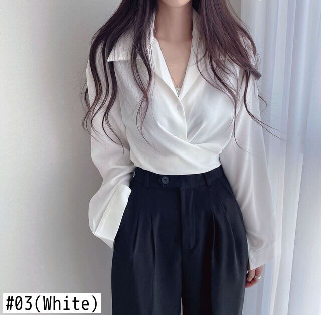 s es 気質ウエストスリムレースアップシングルブレストショートシャツ白 OL トップブラウスシャツ ホワイト