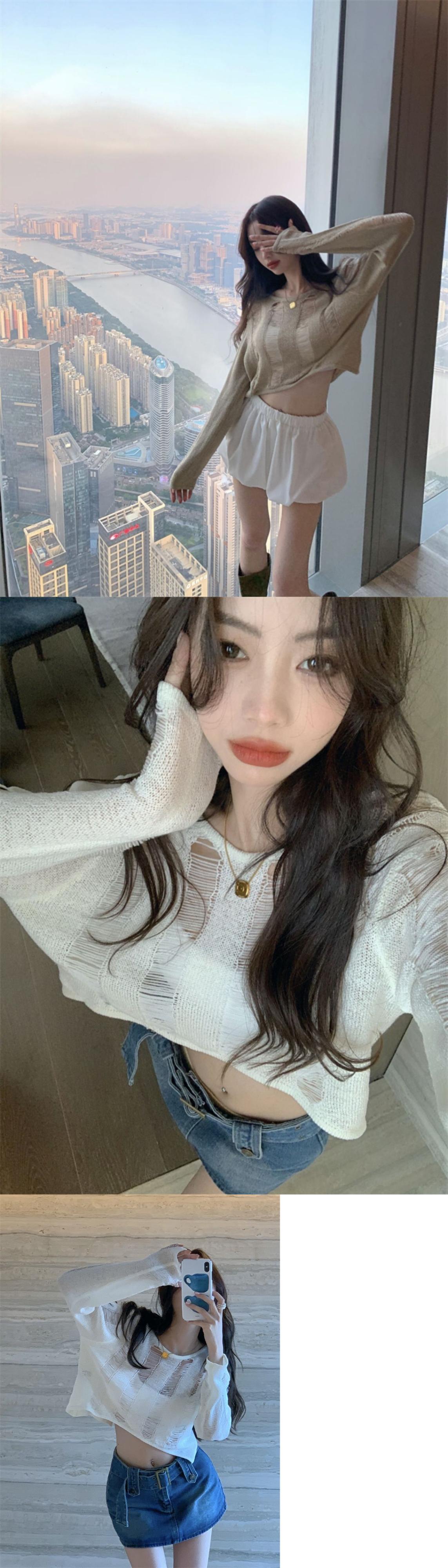 スパイシーガールセンス不規則巾着レースアップ中空袖トップス Y2k プルニット黒セーターシャツ ブラック