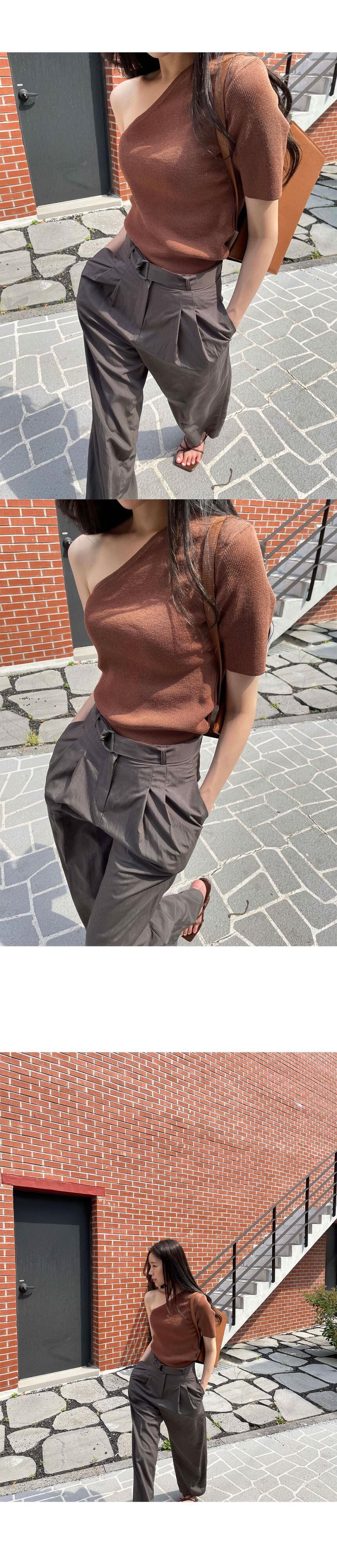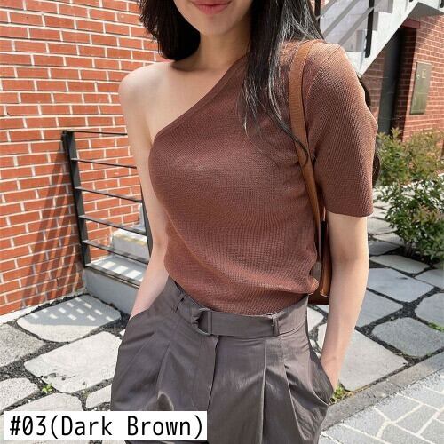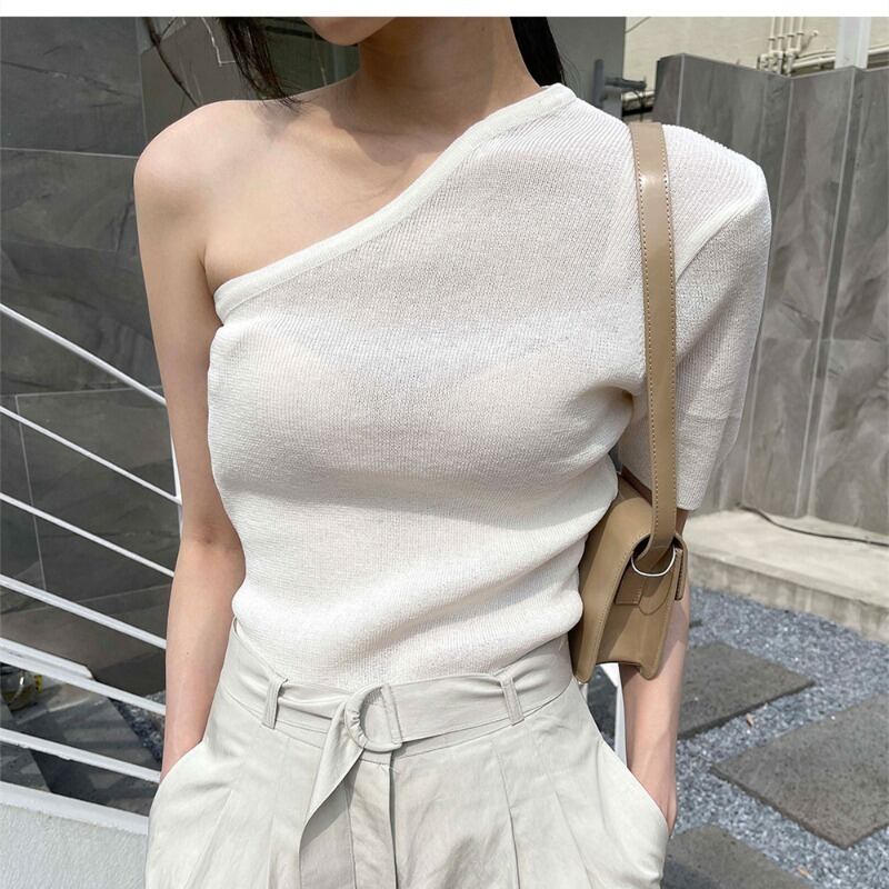 アイストップスキューショルダー不規則半袖ニット Tシャツ Y2k コットンクロップトップグラフィックホワイト Tシャツ美学グランジ ショート ハーフスリーブ シルク