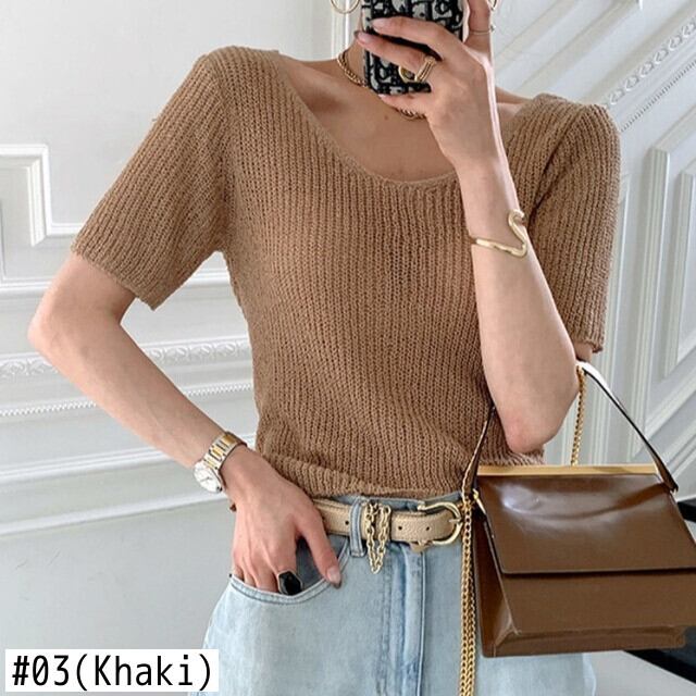 セクシー V バックレスセーターツイスト V ネックルーズアイス半袖ニットシャツセーター半袖プル ショート ハーフスリーブ Vネック シルク