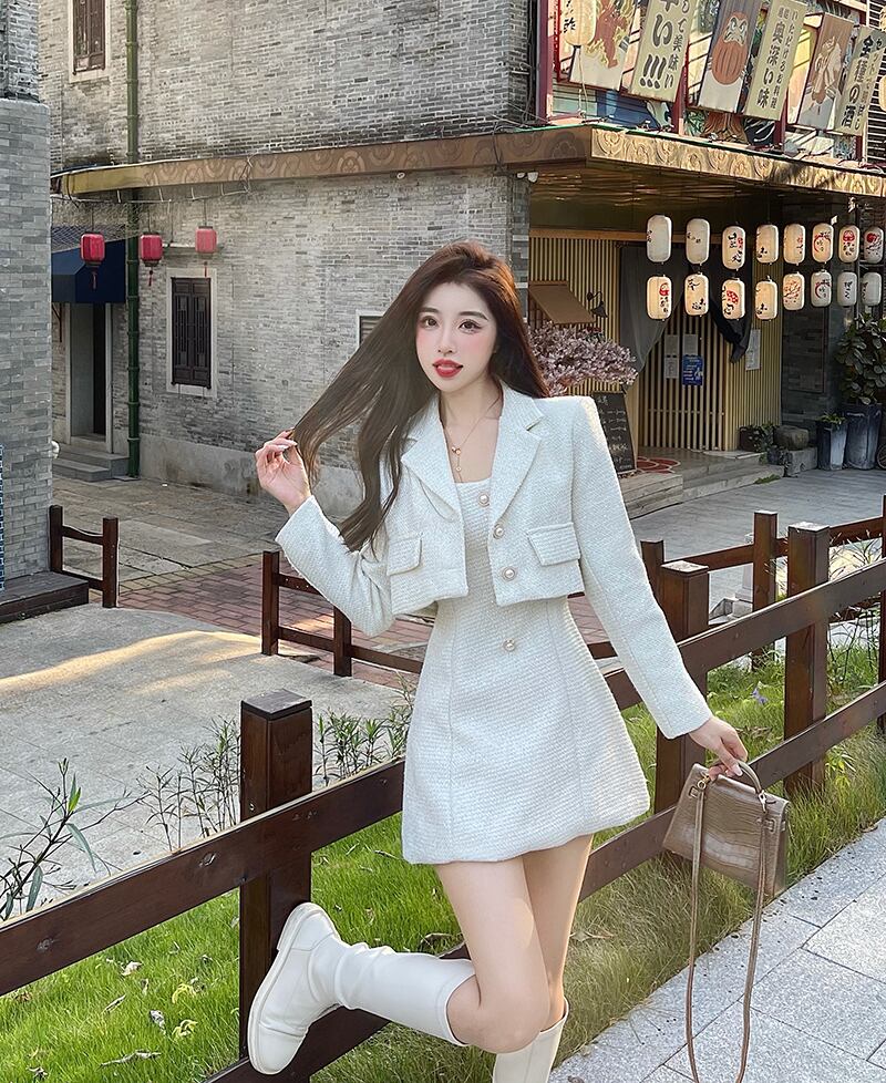 ドレススーツキャミソールドレスショートツイードジャケットウール & ブレンドテーラードキルティングコートスタイル 2 点セット衣装 Vestido レッド