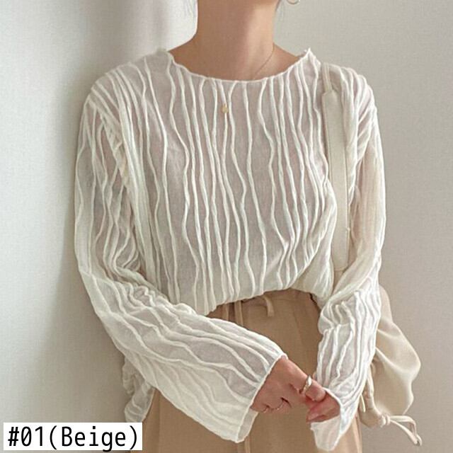 シャツシック気質 O ネック 3D ルース多用途透明長袖シャツトップブラウス Tシャツ ロング Oネック