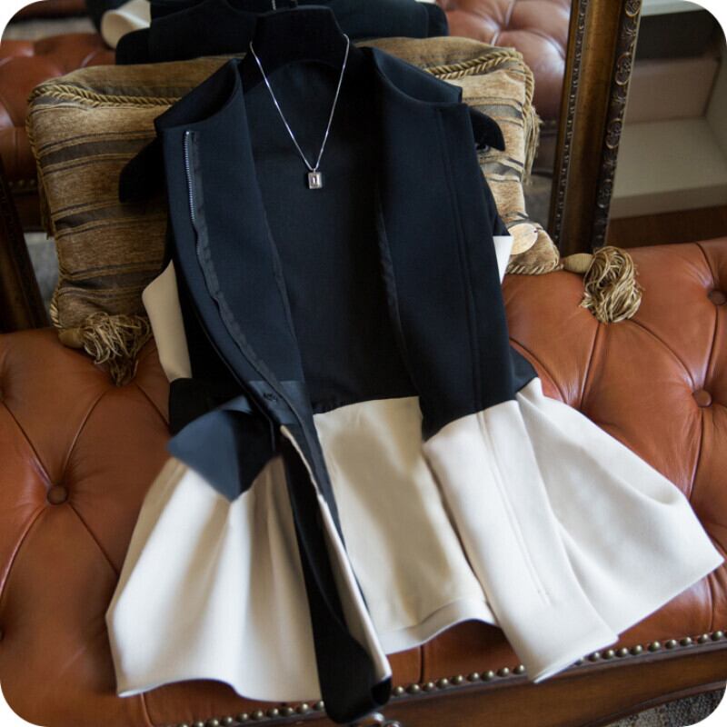 フレンチノースリーブベストビッグリボンスリムフィットトップスパッチワークタンクトップ黒シャツコート ブラック