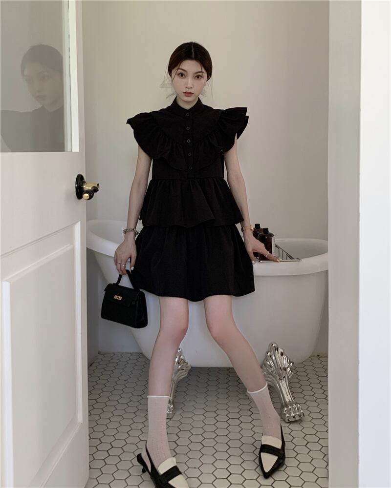 フレンチスタイルフライスリーブドレスセクシーY2kミニVestidosデフリルブラックケーキドレスローブストリートパンク