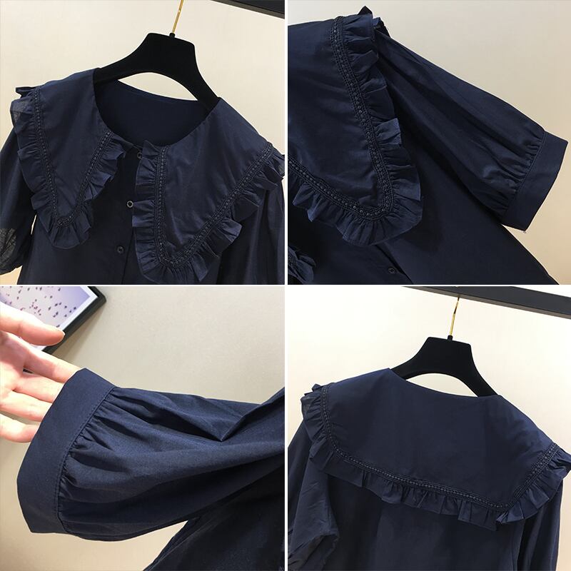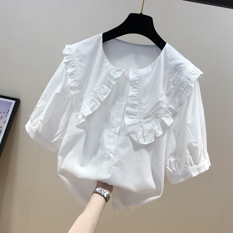 De Moda ドールネック半袖シフォンシャツルーズホワイトシャツトップ怠惰ブラウス ショート ハーフスリーブ