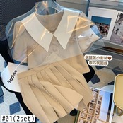 プレッピースタイル 2 点セットレディース衣装半袖スーツセット半袖スカートラペル夏ブレザークロップトップスコート Y2k ショート ハーフスリーブ サマー 夏物