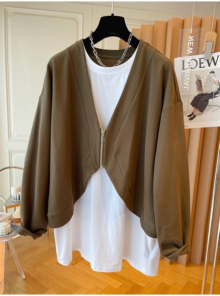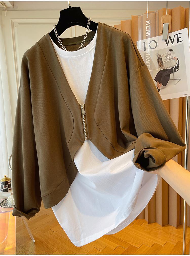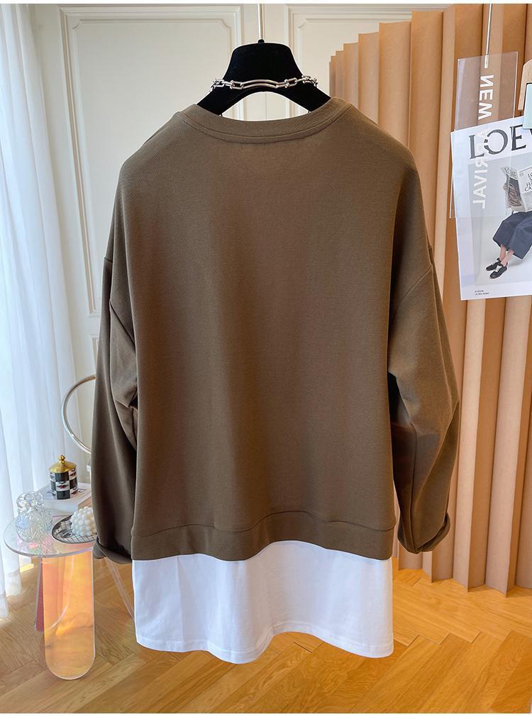 ジップアップパーカー Sudaderas パラ原宿服美的特大コントラストステッチ偽ツーピーススウェット シャツ かわいい