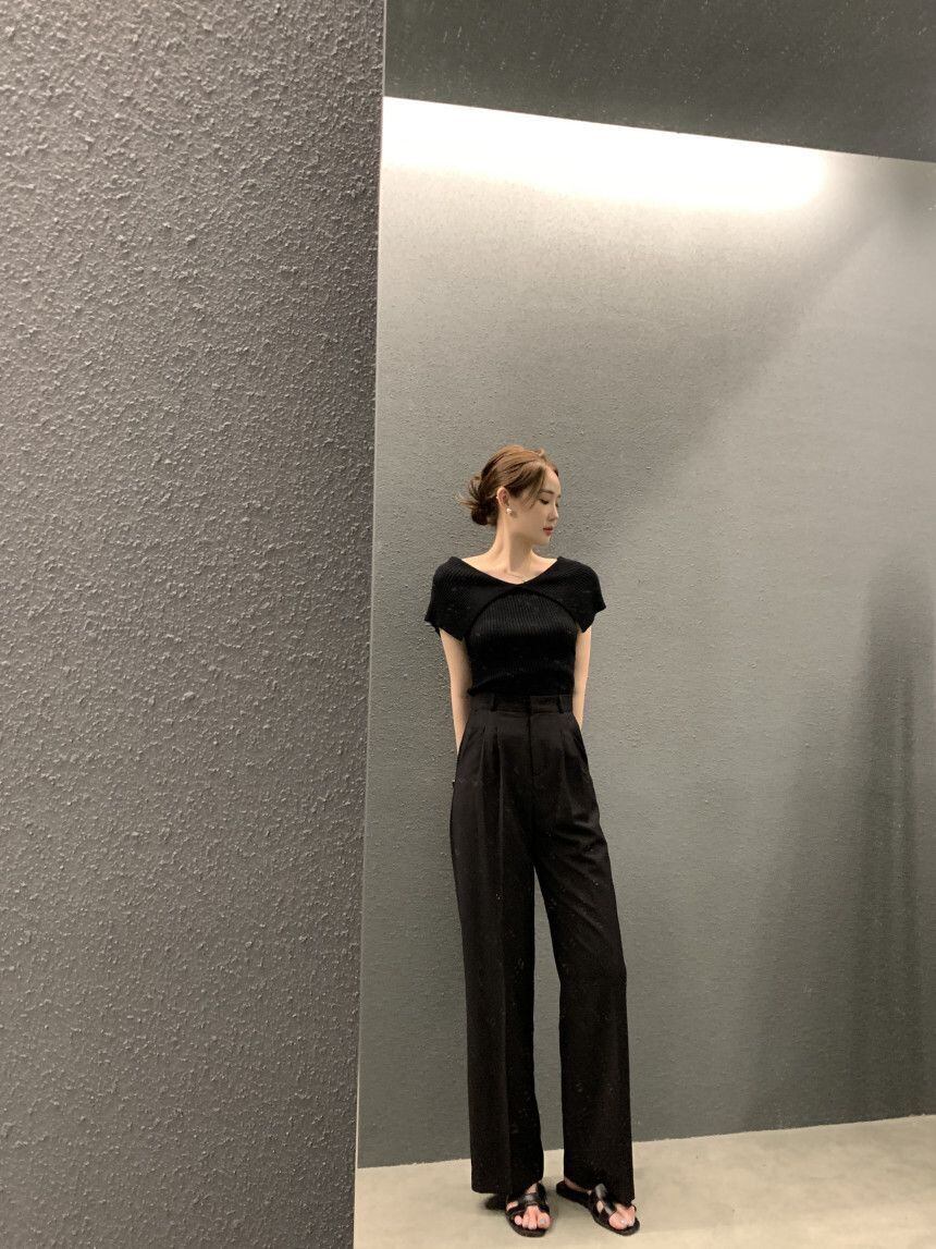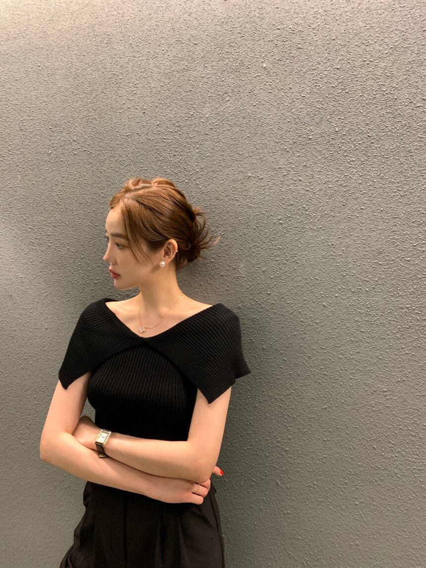 シックスリムフィットオフショルダーニットセーターシンプルesトップス夏無地ラペル半袖プルオーバーシャツ ショート ハーフスリーブ サマー 夏物 ソリッドカラー