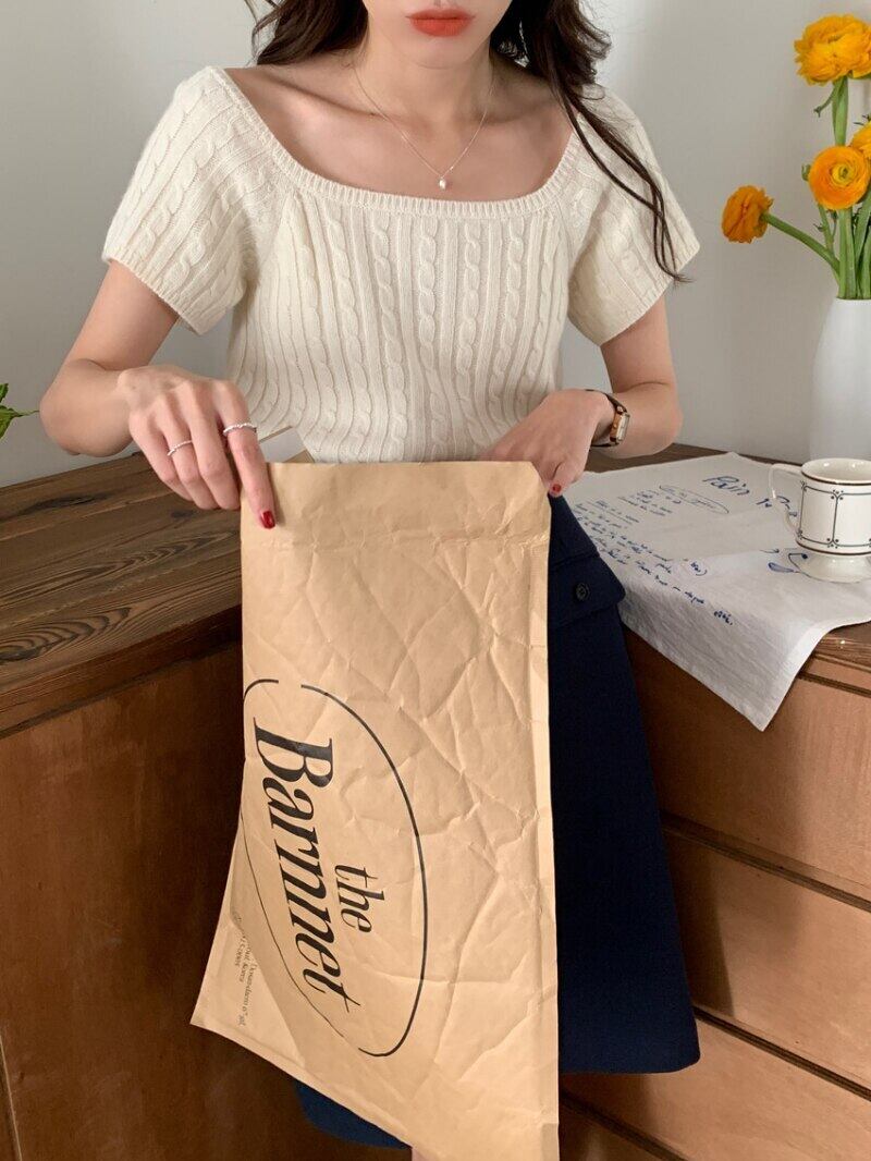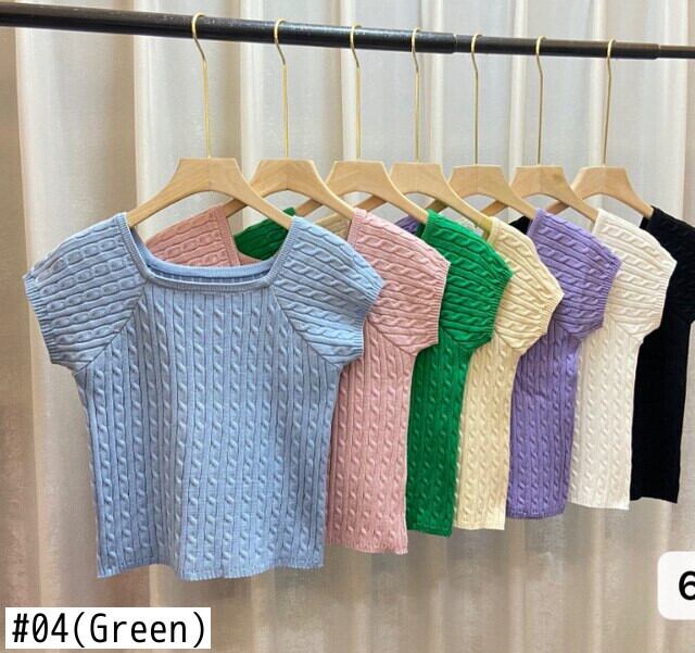 シャツ気質スクエアソリッドプルオーバーホワイトツイストセータートップ半袖ニット Tシャツクロップトップグランジ ショート ハーフスリーブ ソリッドカラー スクウェア