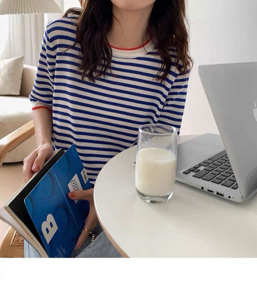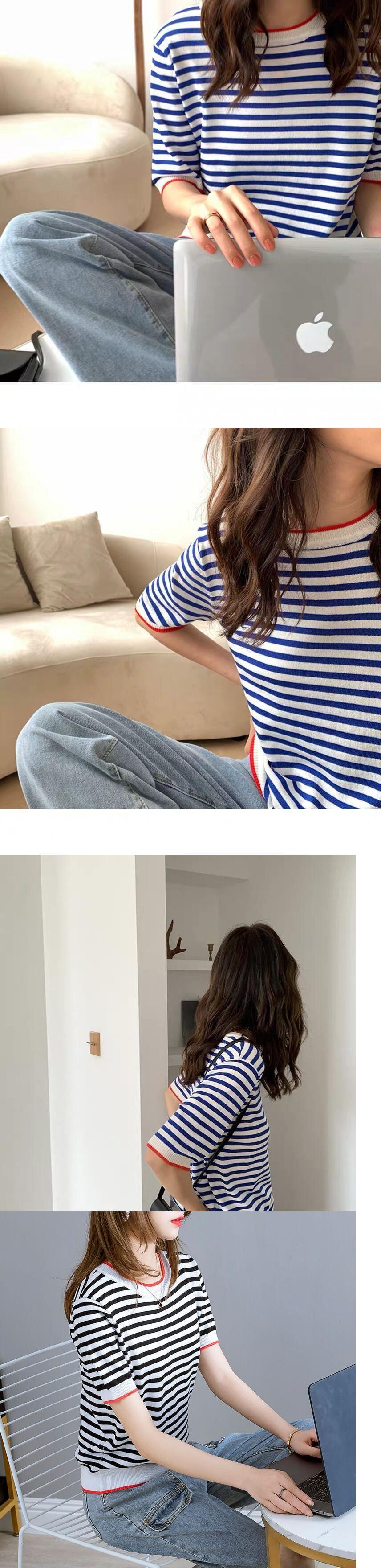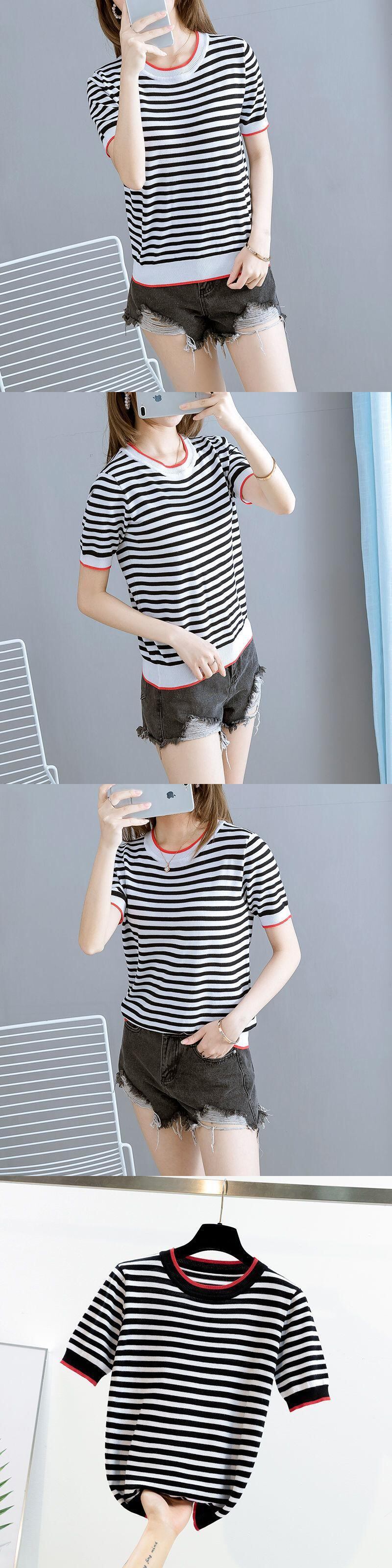 アイス半袖ニットシャツストライプ Tシャツグラフィック Tシャツトップ特大シャツ Tシャツ ショート ハーフスリーブ シルク