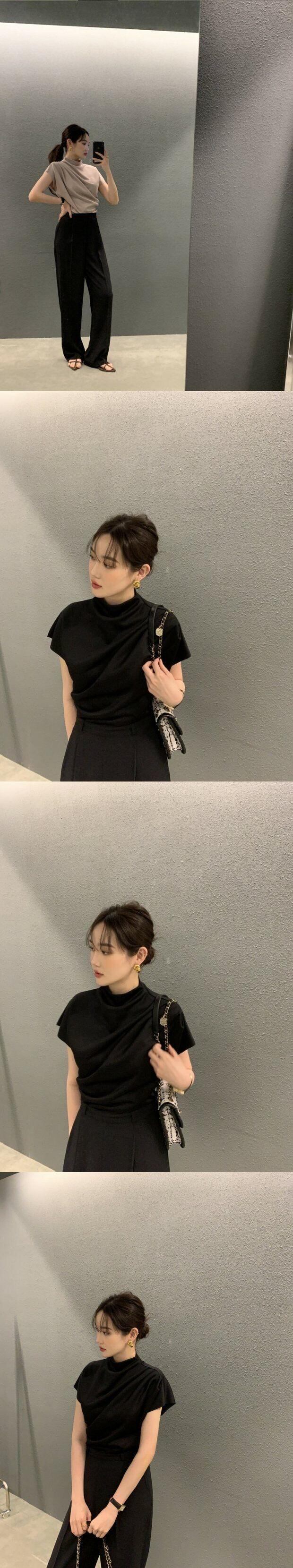 Blusa スタンドカラー ブラウス センスコート スタイル トップス ハーフ 半袖 プリーツ シャツ Tシャツ クロップシャツ レディース ショート ハーフスリーブ