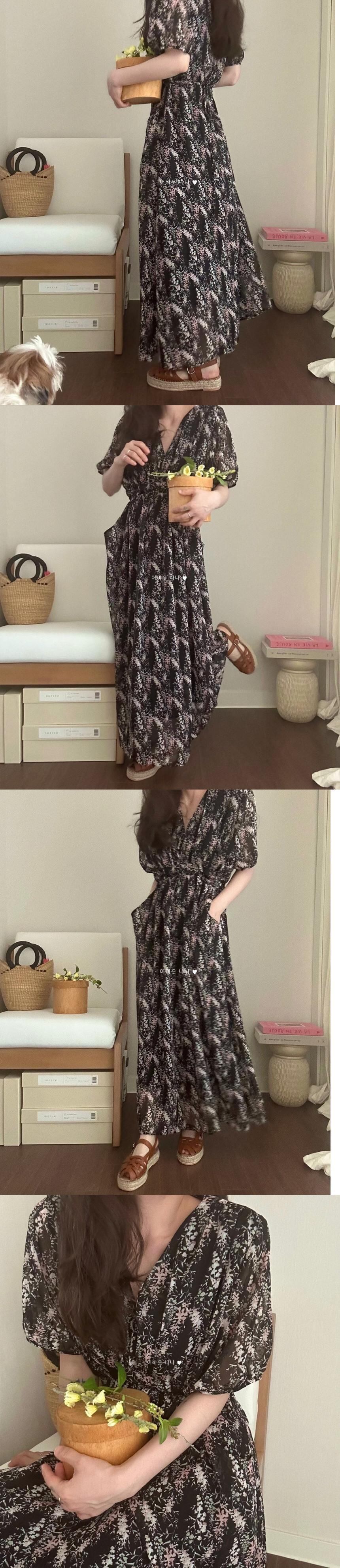 V ネックパフポケット黒花柄ドレス Vestidos デ夏半袖シフォンドレスローブビーチ ショート ブラック ハーフスリーブ サマー 夏物