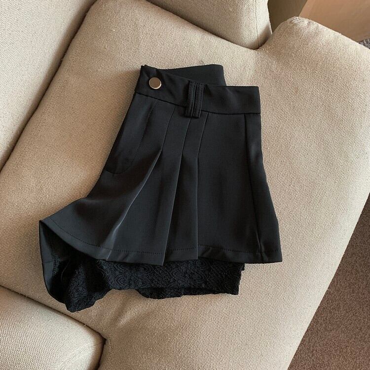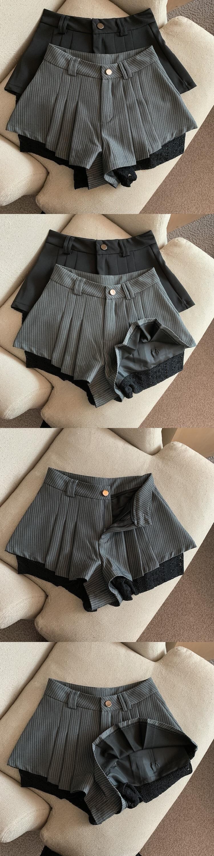 黒スーツワイドレッグショーツセクシーカーゴパンタロンコルトスデウエストショーツプリーツスカートグレーストライプ ブラック ブルマー ワイドパンツ